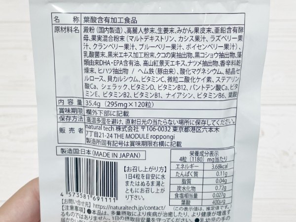 さらに、3粒中に800μgと、葉酸自体もたっぷり配合。
